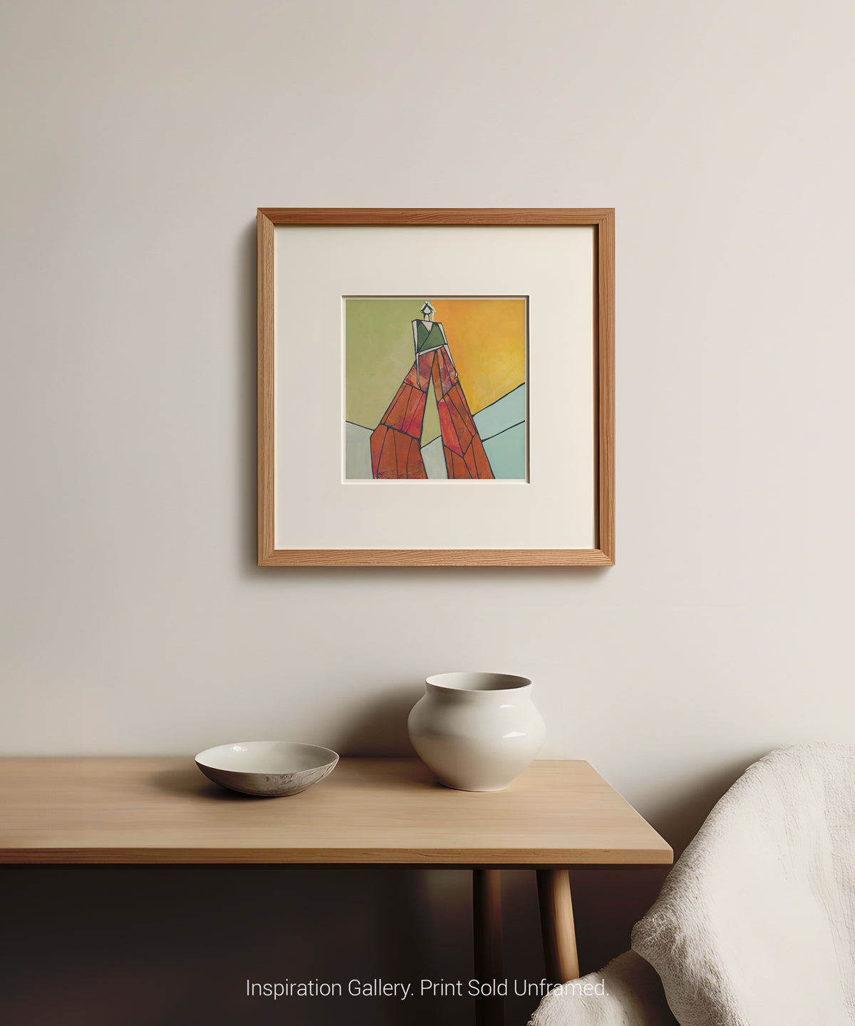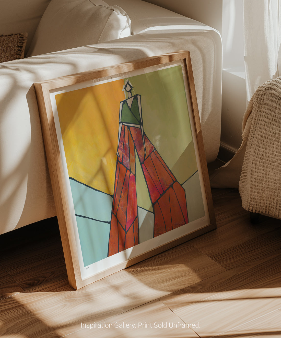 Fine Art Giclée prints on 128lb smooth matte paper, reproduced from the original acrylic and monotype artwork. Signed and numbered, limited edition print.
