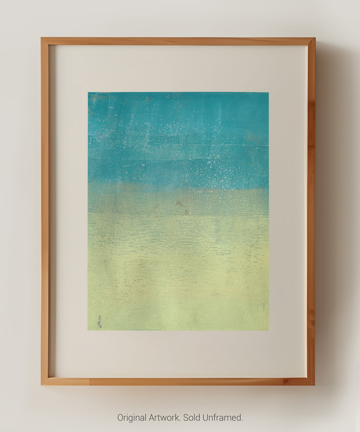 An original acrylic monotype print on 88lb acid-free gravure paper. The print area is approximately 11×14”, with subtle variations that reflect the hand-printing process.