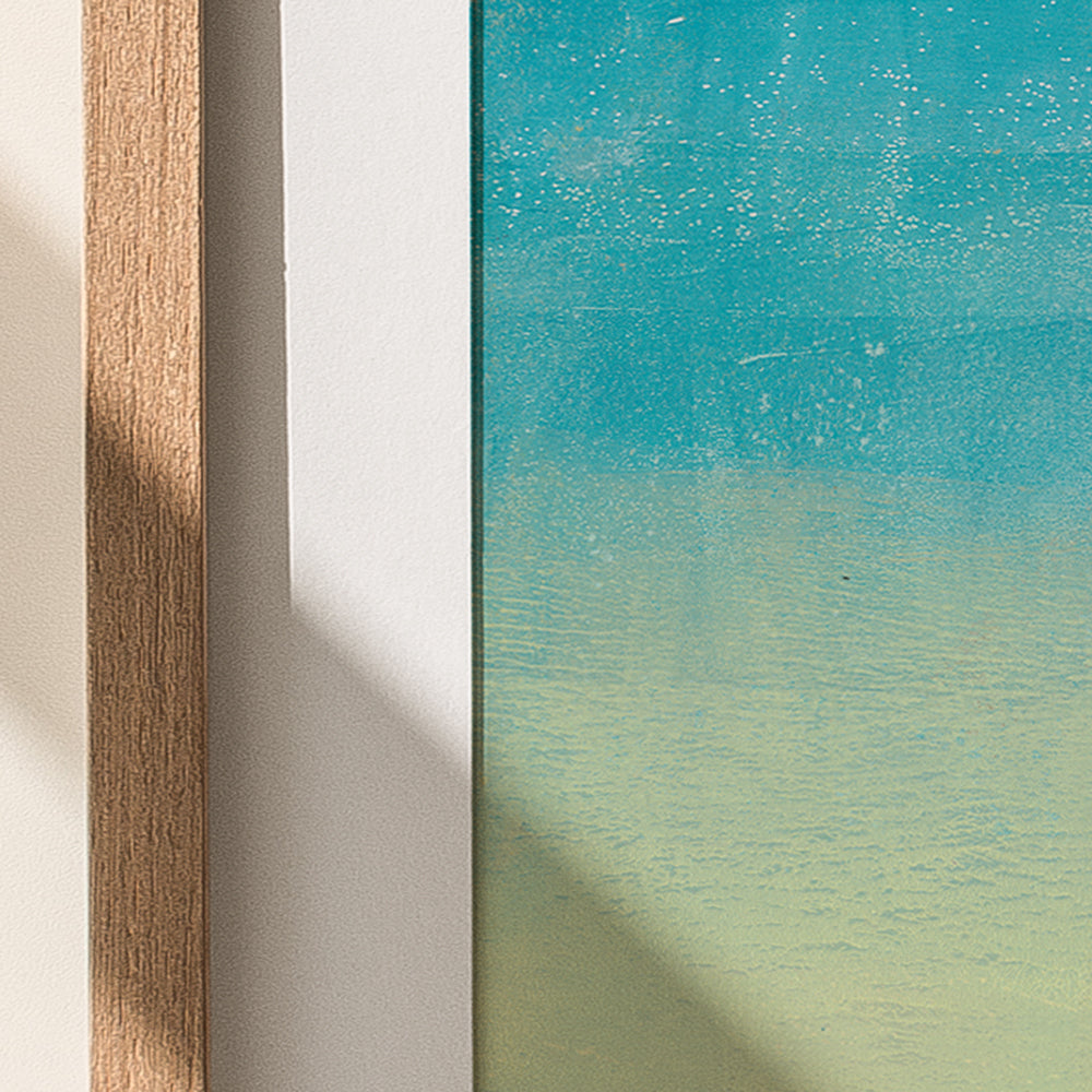 The artwork ships matted in a 16×20” mat and ready to frame. In select cases, it can also ship fully framed with glass. Frame dimensions: 17.5×21.5” × 1”, natural wood finish. Please inquire for U.S. shipping availability and pricing for framed orders.