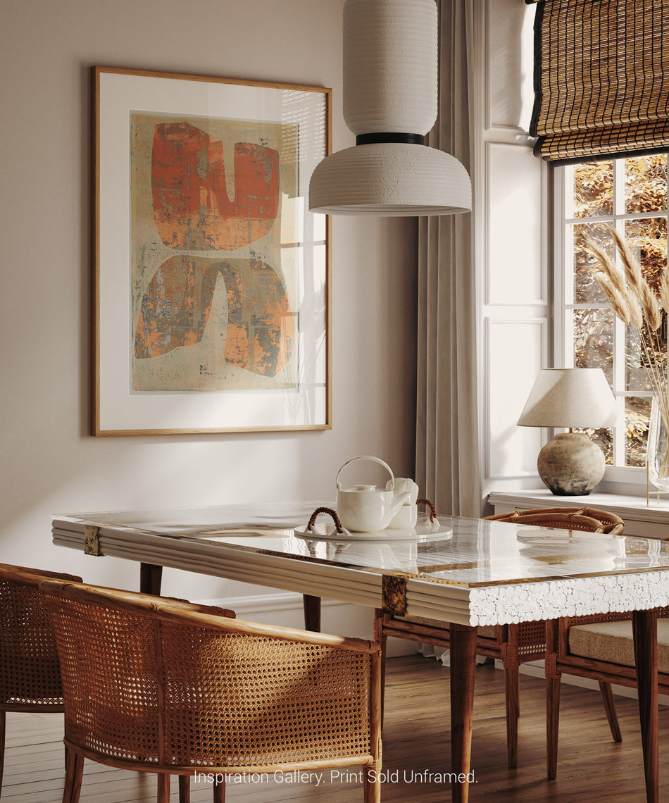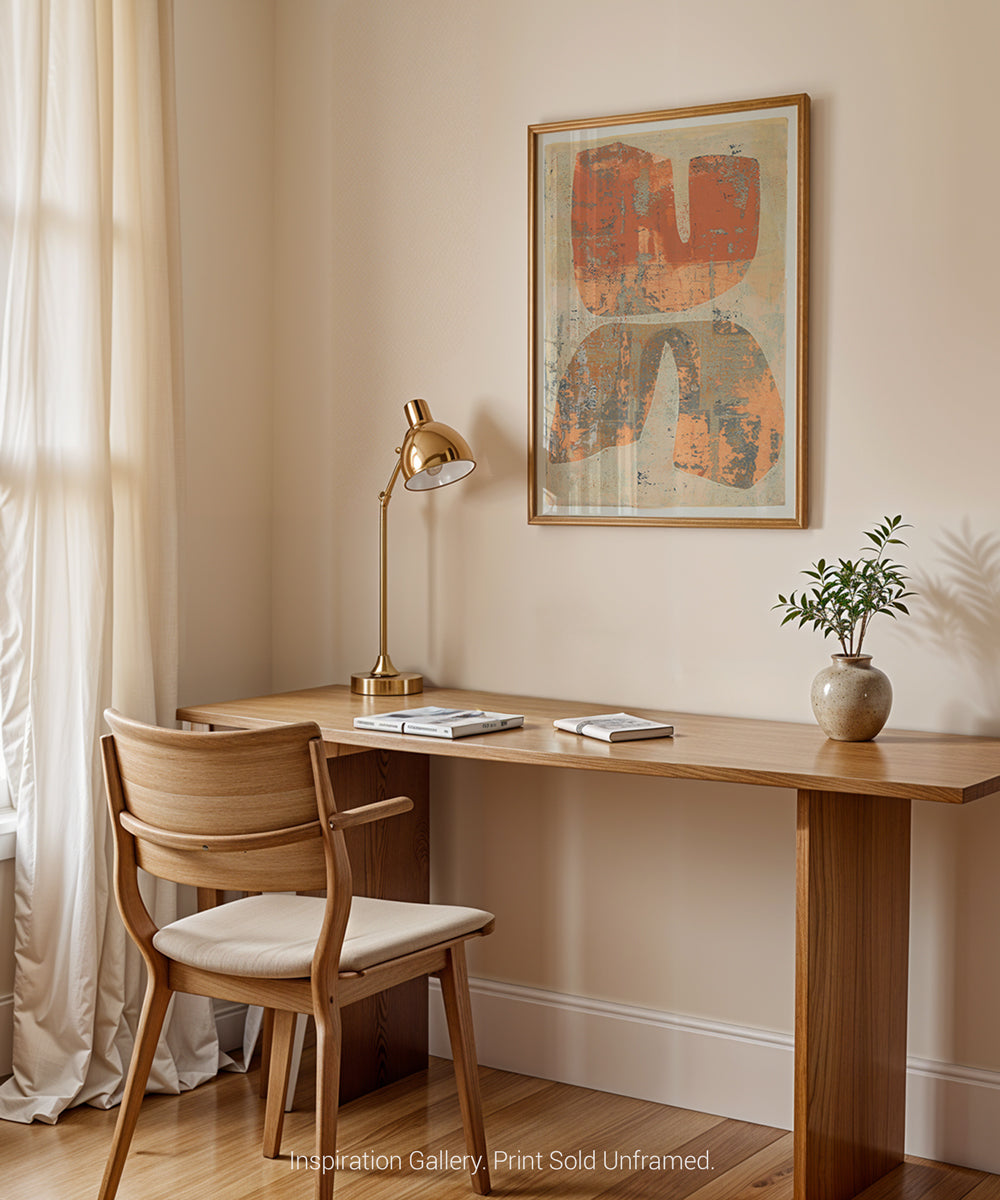In warm terracotta and stone, "Terra Forma" distills mid-century inspired forms into an earthy, textured composition. Bold yet understated, it brings depth and grounded warmth to modern interiors.