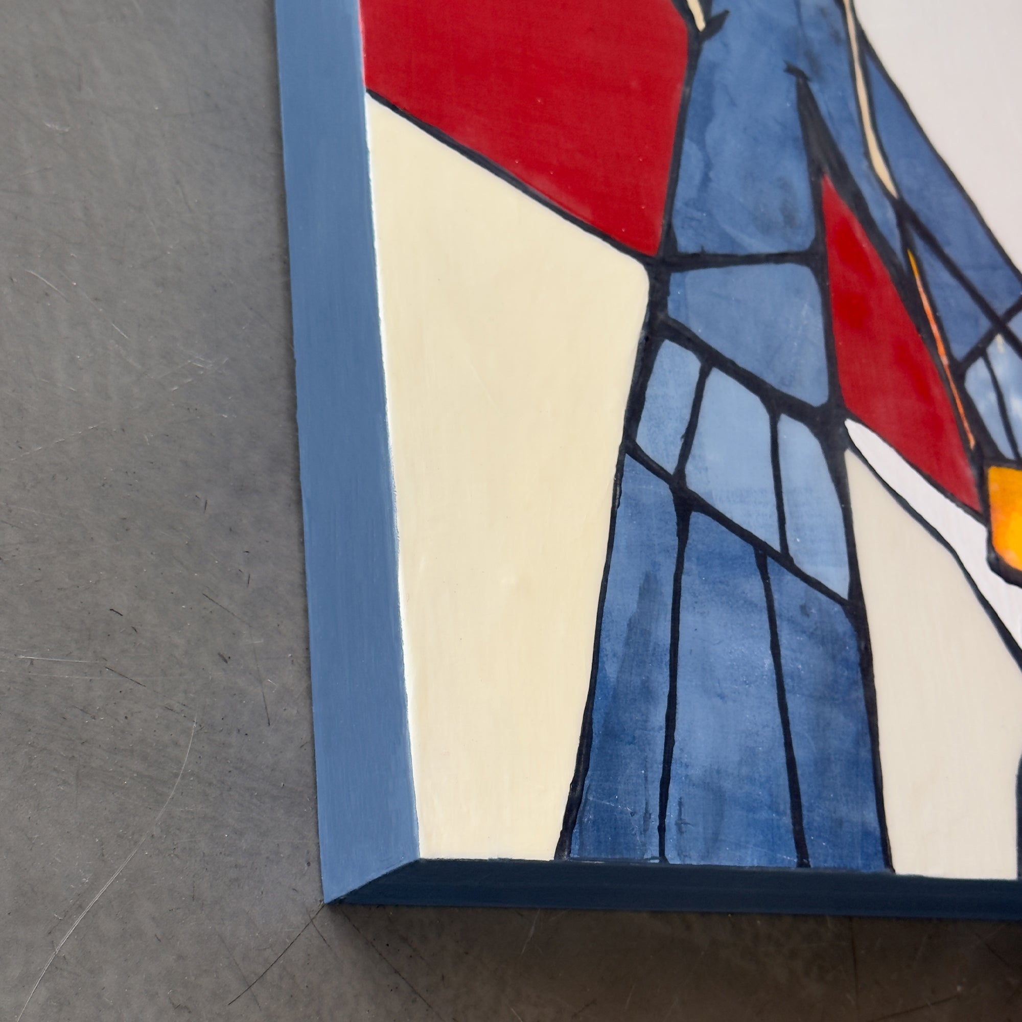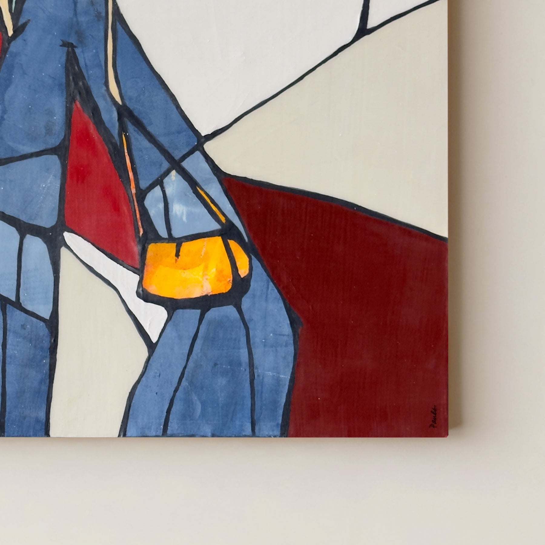 Original artwork. Acrylic and monotype printed paper on 2” wood cradled panel. 16"x16"