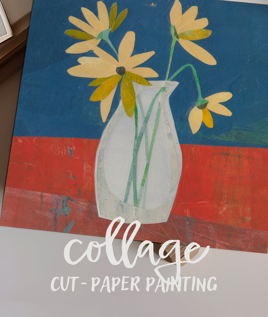 Join me as we break down everyday objects—florals, fruit, garden tools, even a favorite table—into bold, simplified forms of color and shape. With painted papers as your medium, you’ll reimagine the familiar in fresh, playful compositions.